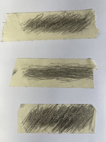 ③車台番号とエンジン番号の石刷り 各3枚ずつ 合計6枚